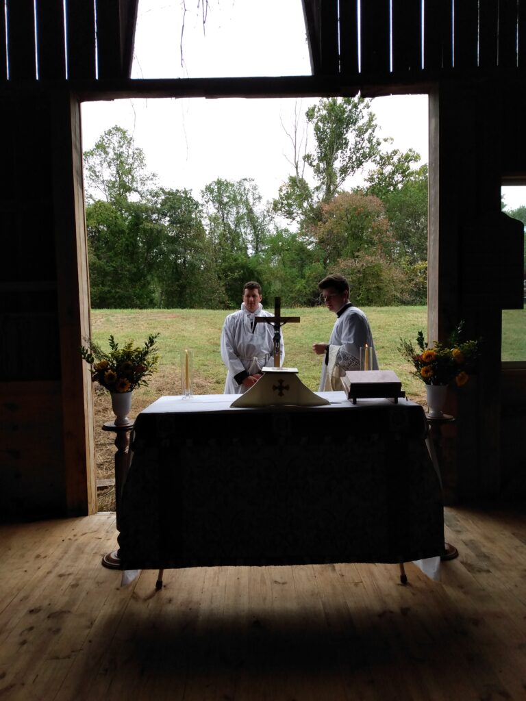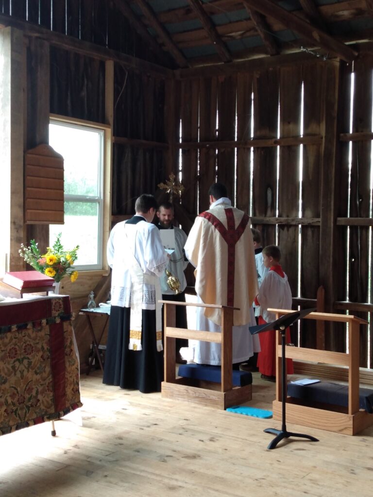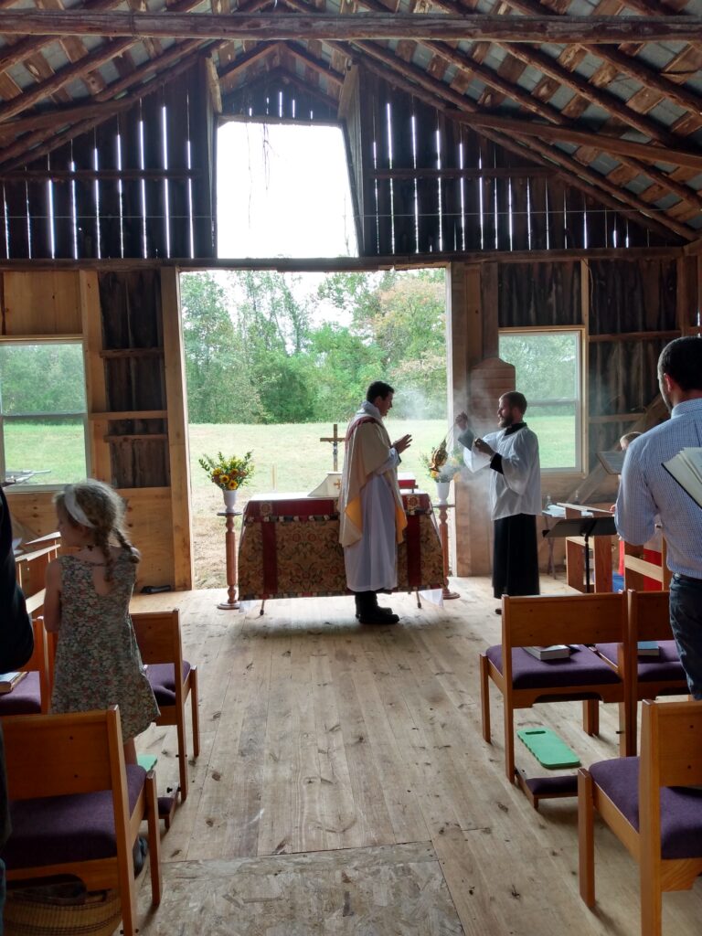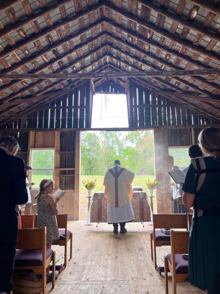 On Monday, September 29 — the day after our first Joshua Program cohort arrived — the Chapel of St. Dunstan’s Academy held its very first Holy Communion service, in our very unfinished barn.