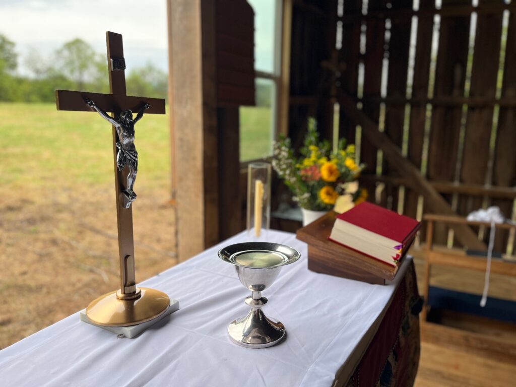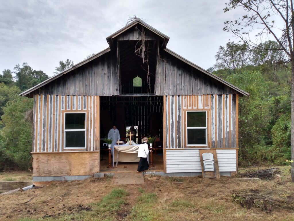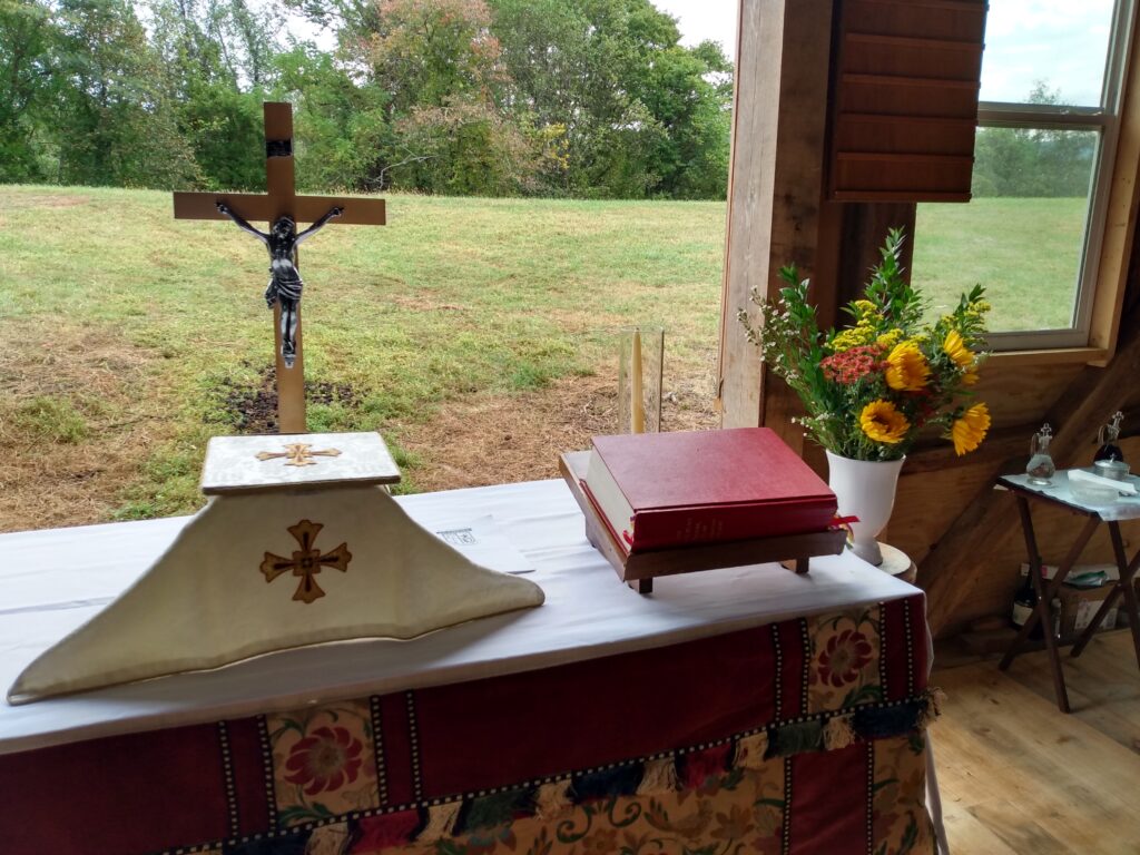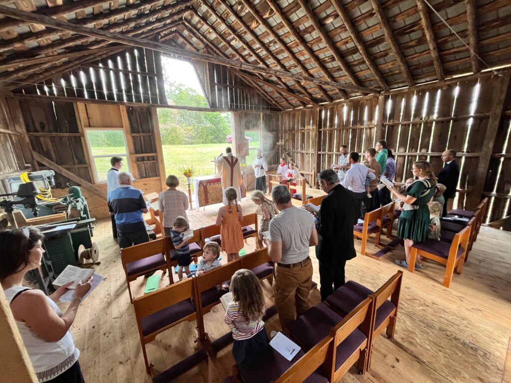 On Monday, September 29 — the day after our first Joshua Program cohort arrived — the Chapel of St. Dunstan’s Academy held its very first Holy Communion service, in our very unfinished barn.